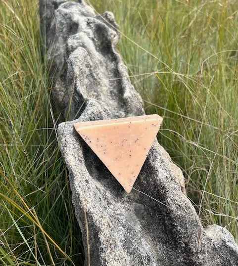 Deze natuurlijke zeep is gemaakt met roze klei en maanzaad, in combinatie met roosgeranium en wierook etherische olie. De roze klei absorbeert talg, matteert de huid en reinigt de onzuiverheden en het maanzaad geeft je huid een goede scrub, zodat dode huidcellen worden afgevoerd. Je kunt deze natuurlijke zeep gebruiken voor je lichaam, en ruikt warm en bloemig. De zepen worden met de hand gesneden en kunnen wat verschillen in gewicht.